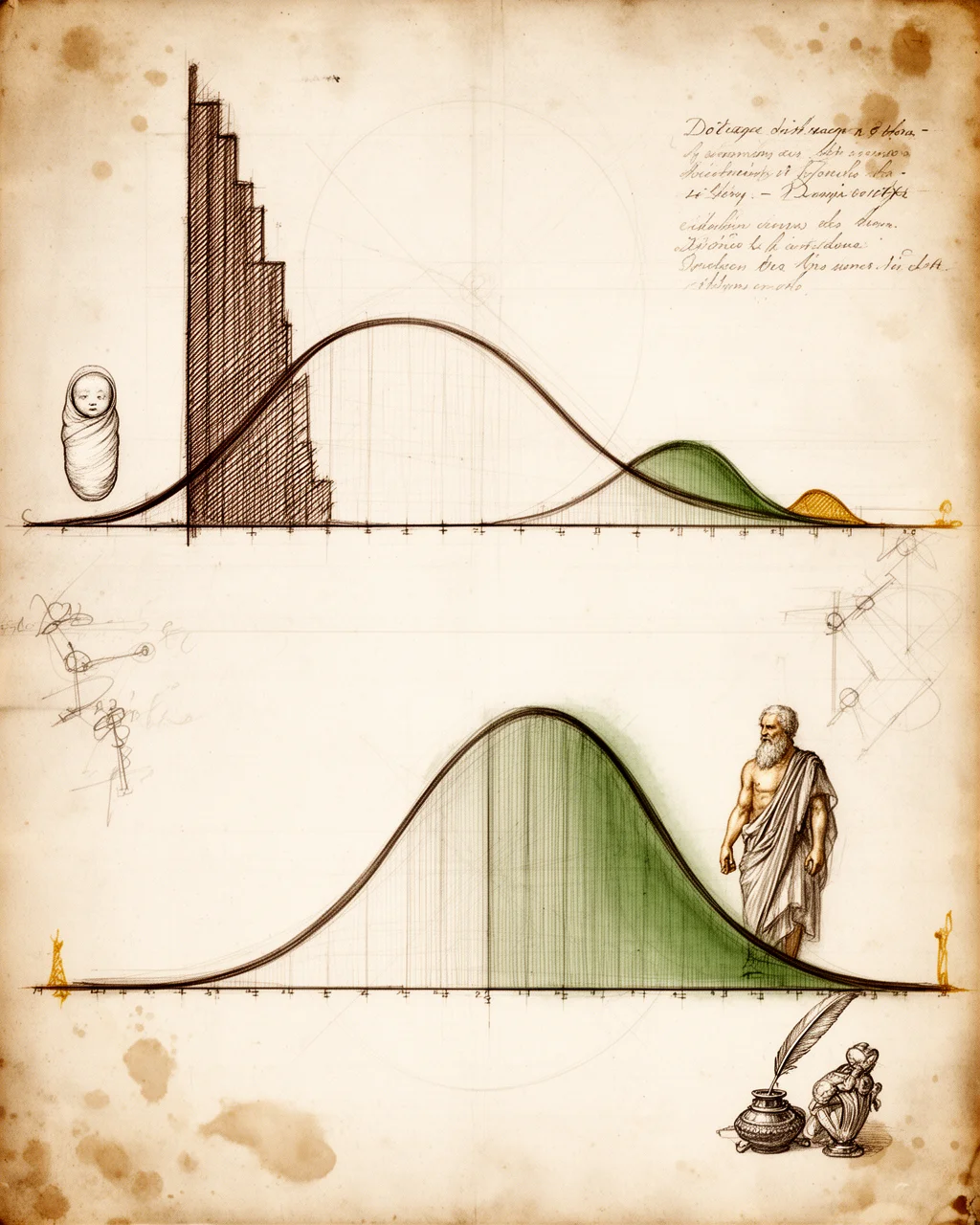 Astfel, atunci când vezi o anume speranță de viață în vremuri ancestrale sau antice, poți cu ușurință dubla cifra pentru a estima durata de viață a omului, și să mai adaugi niște ani. Dacă vezi 20-33 pentru Roma Antică, poți estima că durata de viață era 50-70 de ani. Într-un studiu din 1994, au analizat viețile a 298 de clasici greci sau romani. Cei care au evitat moartea violentă au murit în medie la 72 de ani3.